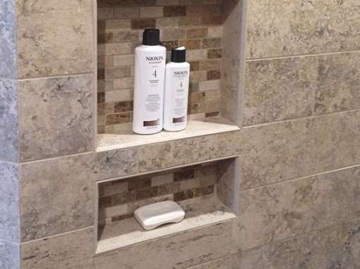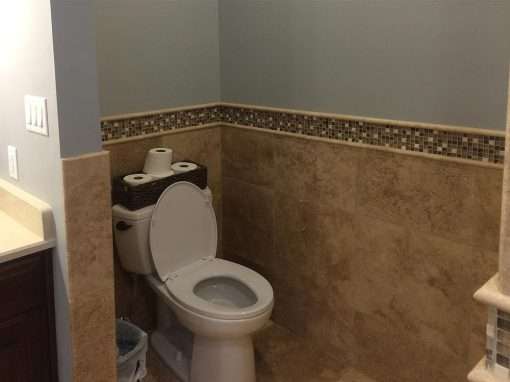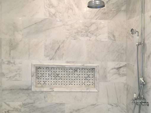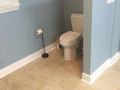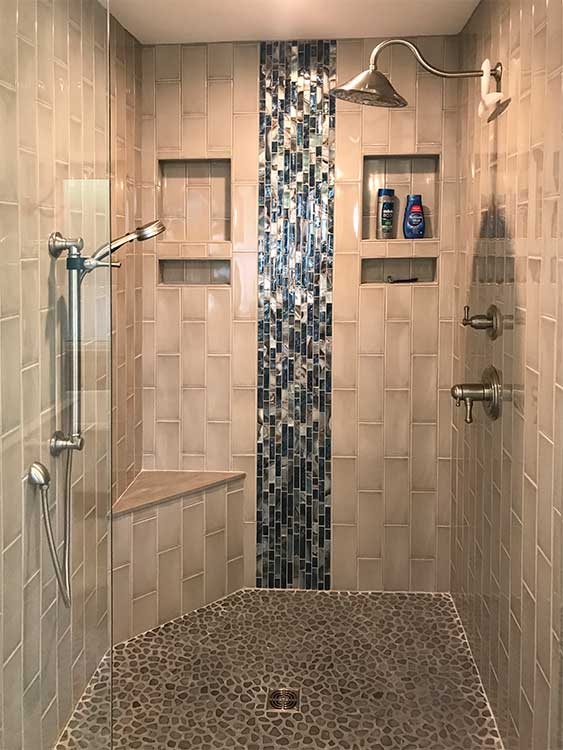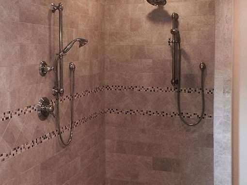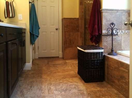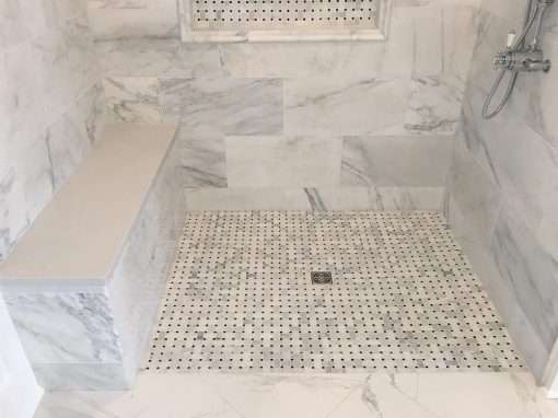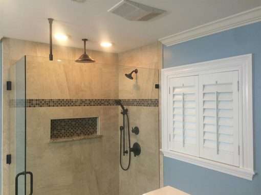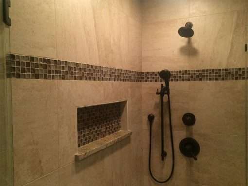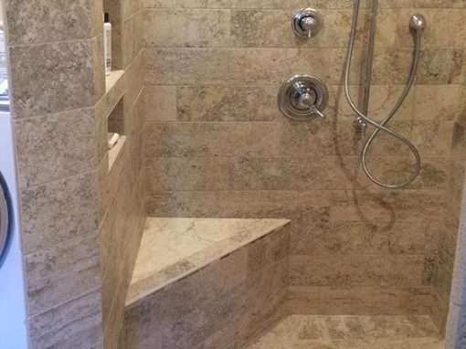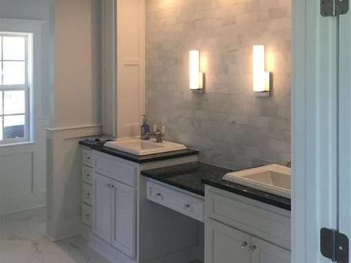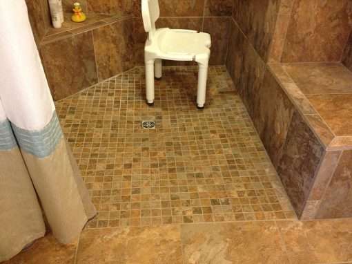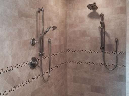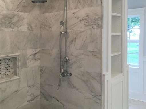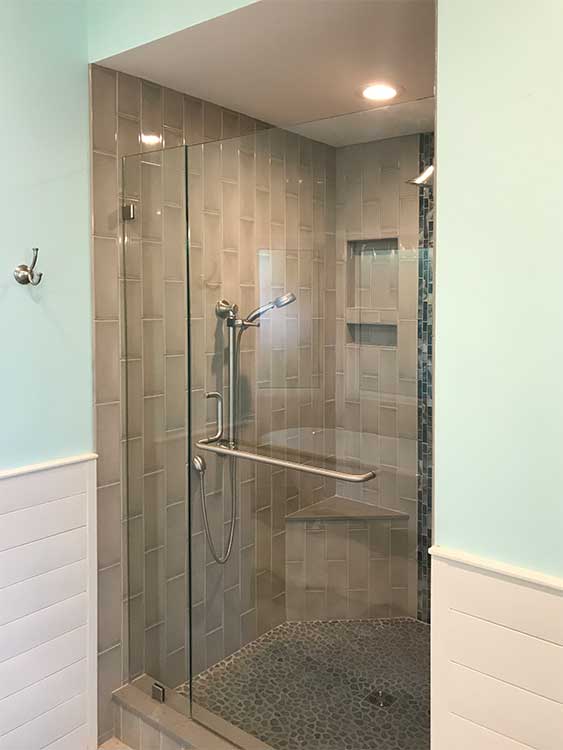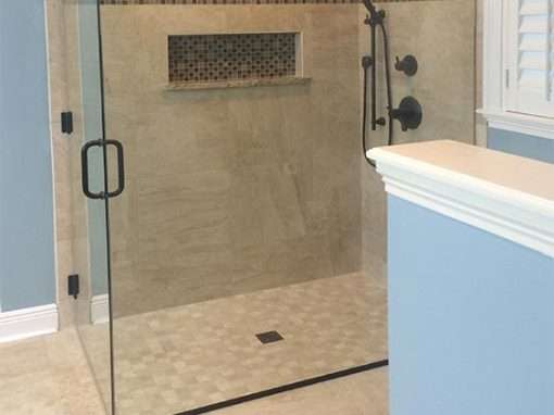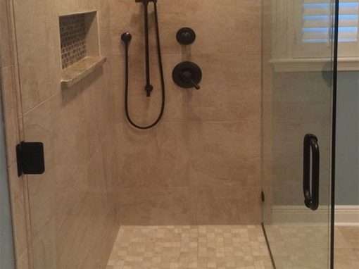 This custom bathroom remodel goes beyond just spaciousness and beauty, it was created with “accessibility” in mind for an aged mother-in-law with mobility limitations. The official term for this type of remodeling is called Aging in Place, but what it means is to allow people to live independently at home or with a relative for as long as possible. N. Huckins Construction specializes in this type of remodeling.