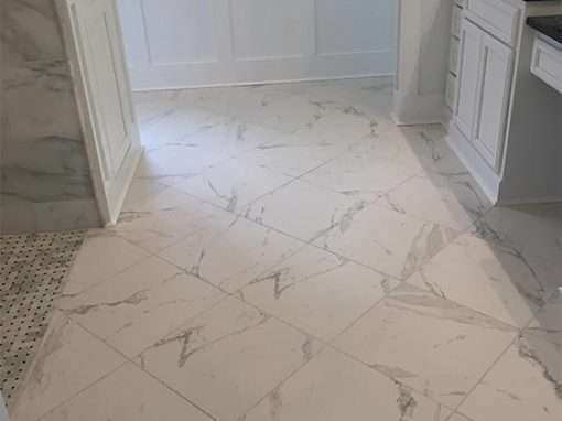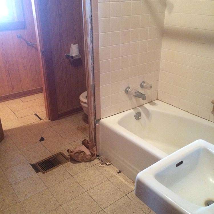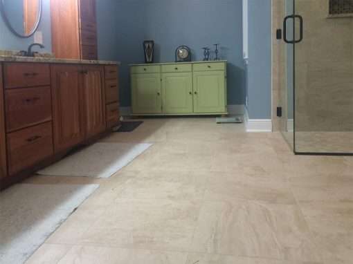 This Long Beach, MS master bathroom remodel originally started out as a small shower repair. It turned out to be an example of seriously faulty work done on the original shower. Upon inspection, structural damage was discovered that required replacement of the shower floor and surrounding walls. A large portion of the bathroom floor suffered collateral damage due to poor shower construction and also had to be replaced.