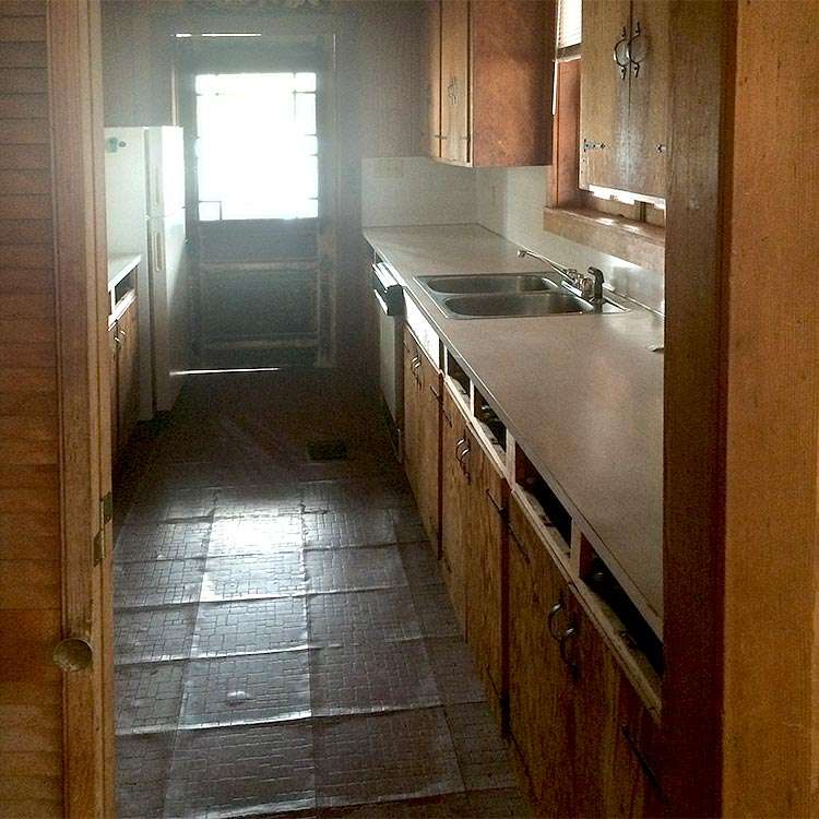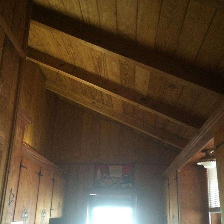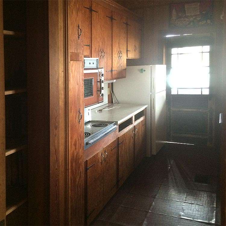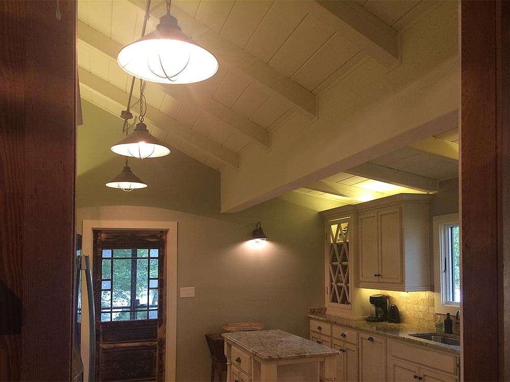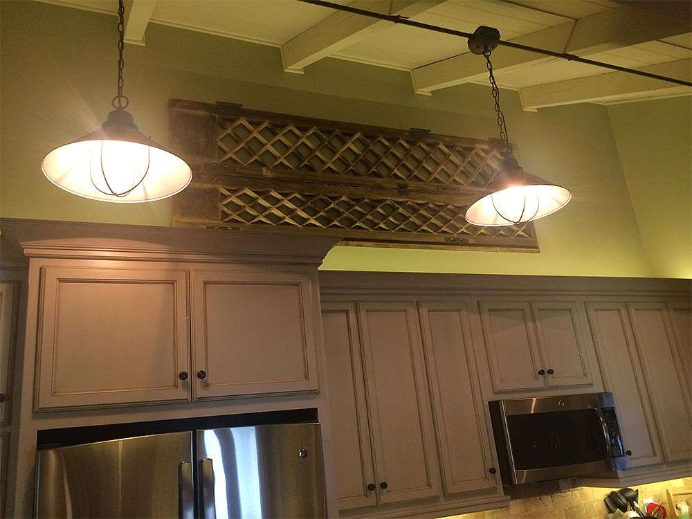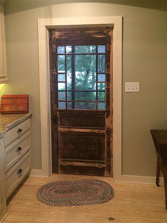 This gallery shows a few before images of the original kitchen in this 50-year-old lake house. The home already included a 150-year-old antique church door and the architectural style of the old home has been preserved and accentuated to create the perfect blend of modernizing without losing the charm and character of the structure.