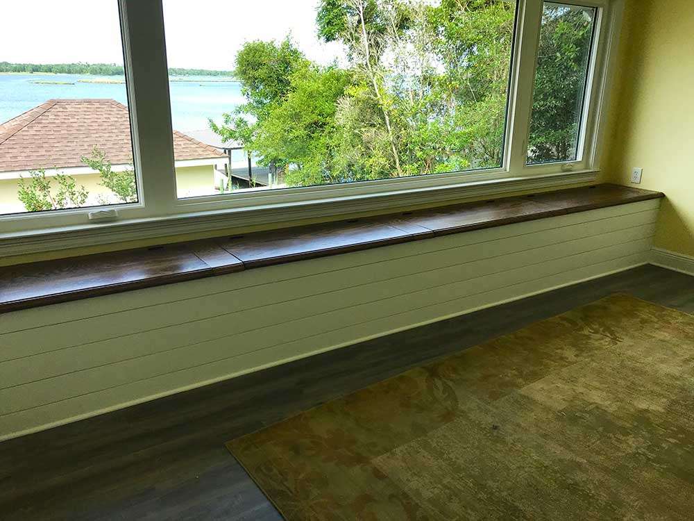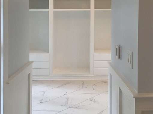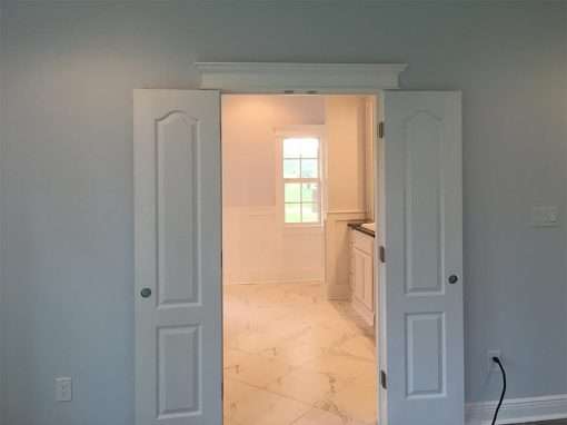 This was originally a custom home but poorly remodeled after Katrina. Located in Gautier, MS, the owners wanted to restore the home to its former glory. During this phase of restoration, a fully custom remodeling of the master bath and bedroom included a walk-in closet, custom designed and built on site, and custom trim throughout. The project also involved structural beam work, moving walls, complete rework of the plumbing, and a dedicated on-demand water heater for the bathroom.
