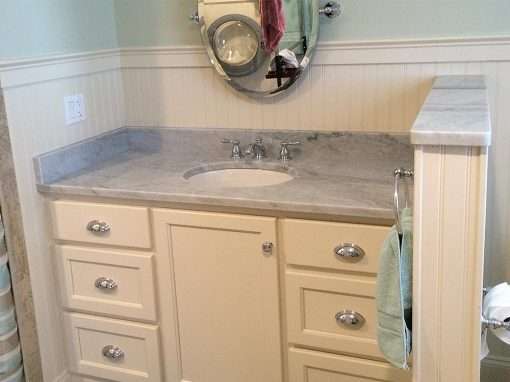 This custom bathroom renovation was part of a whole house renovation for a retired couple who moved to the area and bought an older home with a bayside view. The bathroom required a full gutting but the final cost of modernizing the home was significantly lower than a newer home in a similar location.